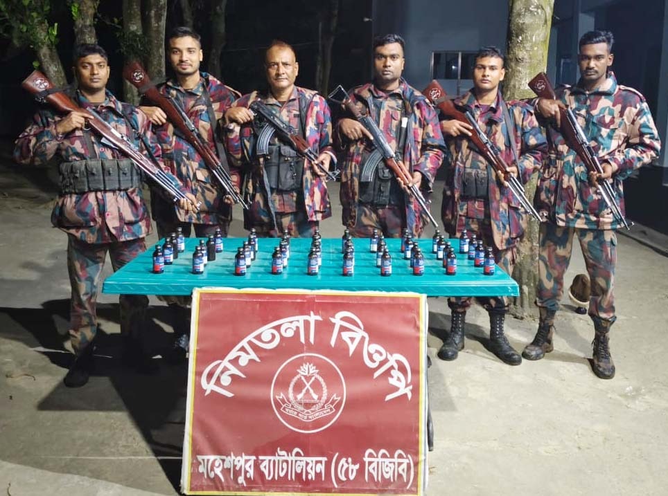 বিজ্ঞপ্তিতে জানানো হয়, গত ২৪ নভেম্বর রাত ৯টা ৩০ মিনিটে নিমতলা বিওপির দায়িত্বপূর্ণ এলাকার সীমান্ত পিলার ৭৫/৩-এস থেকে প্রায় ২০০ গজ অভ্যন্তরে ঈশ্বরচন্দ্রপুর গ্রামের মাঠে মো. আজগর আলীর আখক্ষেতে হাবিলদার শিশির কুমার হালদারের নেতৃত্বে মাদকবিরোধী অভিযান চালিয়ে আসামীবিহীন অবস্থায় ৪০ বোতল ভারতীয় ফেন্সিডিল উদ্ধার করা হয়।